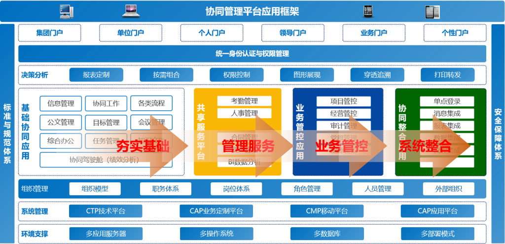 海建集团作为大型综合性建设企业,业务涵盖工程建设、房地产开发、投资运营等多个领域,组织层级多、分子公司分布广,日常运营管理复杂度高。在发展过程中,集团面临诸多管理挑战:集团办公流程分散,公文流转、会议管理、跨部门协作效率低下;人事管理信息化滞后,人员信息不统一,招聘、培训、考核等环节缺乏系统支撑,人才统筹调配困难;项目管控手段传统,进度、成本、质量安全等数据采集滞后,总部对项目现场缺乏实时监控与有效指导;同时,各业务板块存在多个独立建设的异构系统(如财务、造价、生产等),数据标准不一,系统间互联互通困难,形成“信息孤岛”,严重制约了集团一体化管控和科学决策能力。为提升管理效能、强化风险控制、推动高质量发展,海建集团亟需构建统一的数字化协同运营平台,整合办公、人事、项目等核心业务,打通多元异构系统,实现数据融合、流程协同与资源集约化管理,全面支撑集团战略转型与精细化运营。