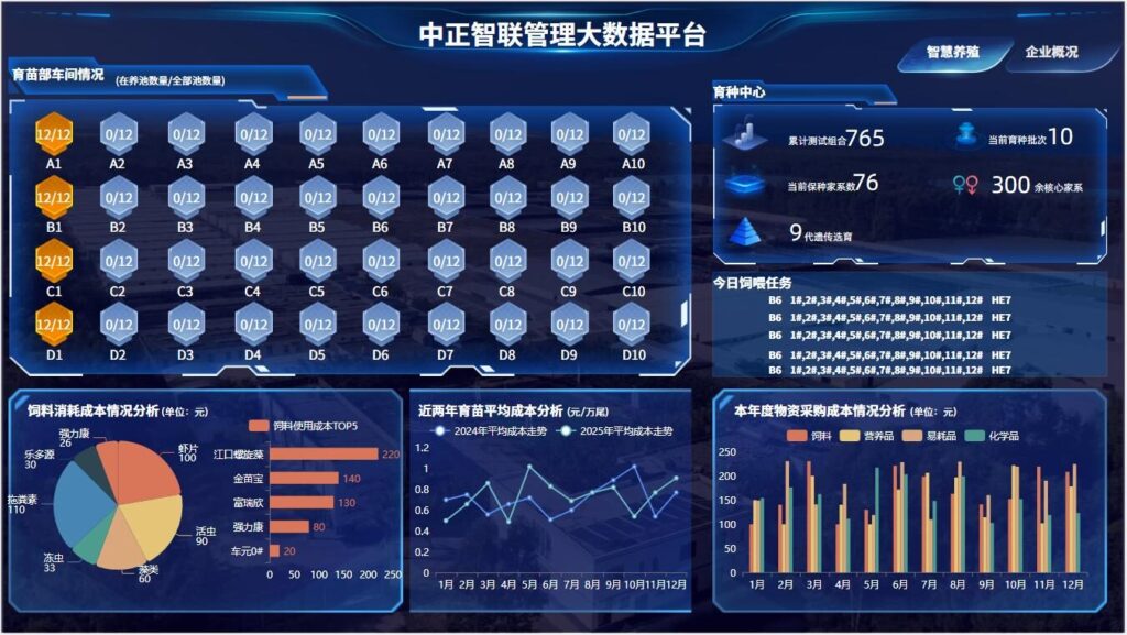 - 数据赋能科学决策与智能升级:中正智慧渔业平台实现了养殖数据的实时汇总与智能洞察,为中正管理层决策提供科学依据,同时积累的海量数据继续为中正后续的智能化升级、生产智能预警奠定了数据基础,全面推动中正渔业向智能化、可持续发展转型。