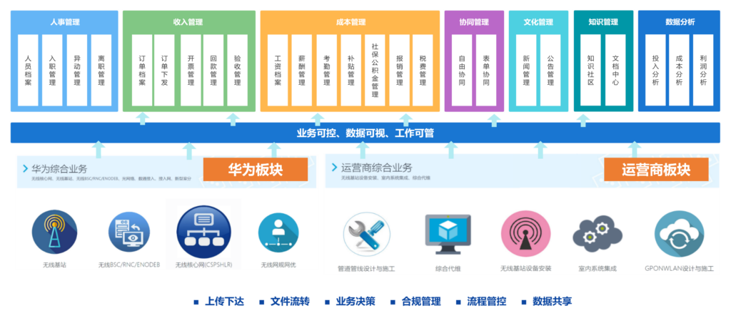 助力通信服务提供商运营与管控,保证工作规范,制度落地;助力信息共享,协同互通;确保业绩核算准确高效;保障数据安全灵活管控。