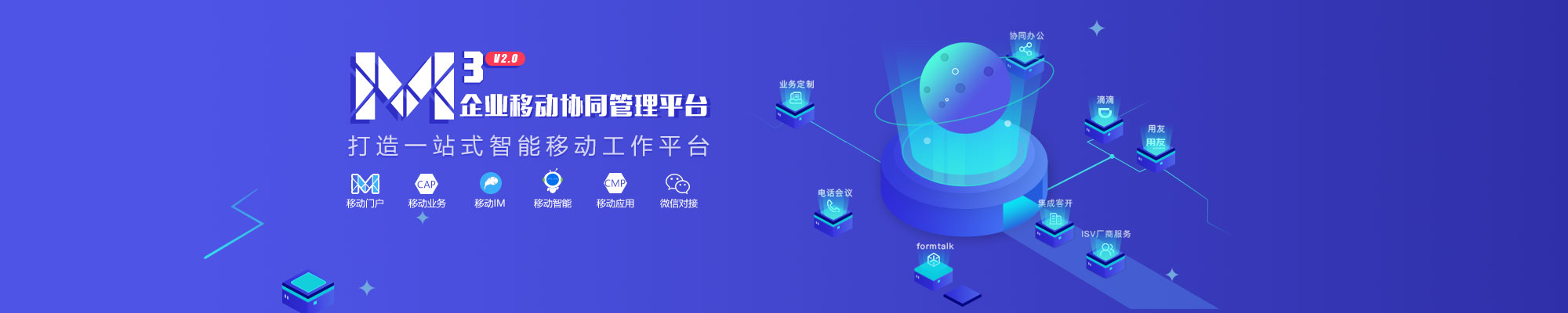 M3企业移动协同管理平台充分考虑企业移动安全保障,依托强大的移动开发框架和开发管理平台, 提供便捷的集成多系统应用能力, 构建以人为中心的智能化移动应用场景,促进人员工作积极性和创造力, 提升企业效率和效能,是为企业量身定制的移动智慧协同平台。
